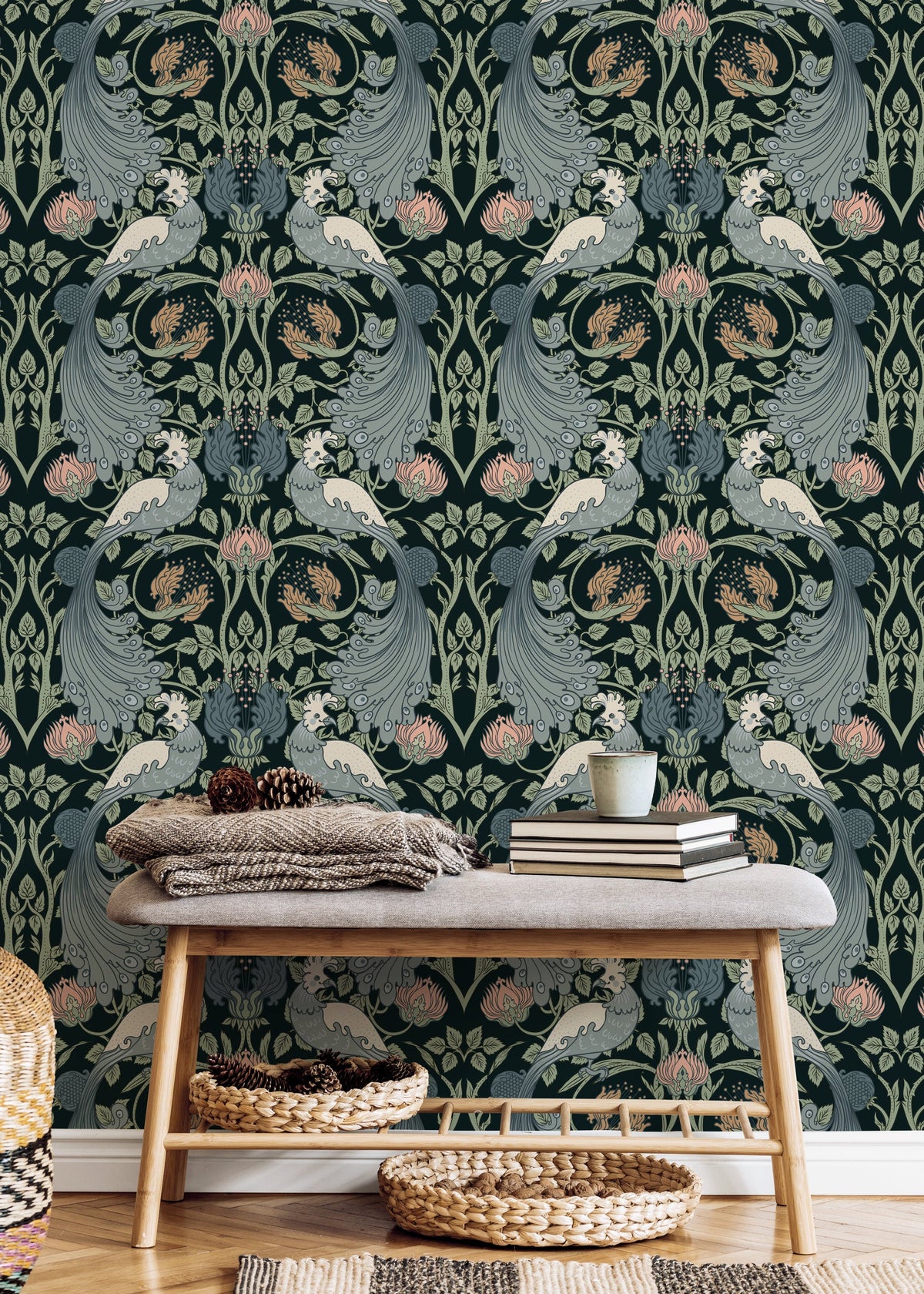 • Complements walls painted in deep navy, sage green, or warm cream tones.